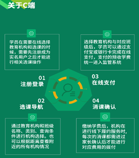 U培+:平臺(tái)是基于“民辦教育全場(chǎng)景綜合服務(wù)+資金監(jiān)管”的互聯(lián)網(wǎng)+模式,通過“行政管理+金融監(jiān)管”的結(jié)合,實(shí)現(xiàn)對(duì)民辦教育機(jī)構(gòu)的辦學(xué)審批、師資建設(shè)、教學(xué)質(zhì)量、服務(wù)質(zhì)量、誠信監(jiān)督、學(xué)費(fèi)監(jiān)管、異動(dòng)預(yù)警等全生命周期管理。